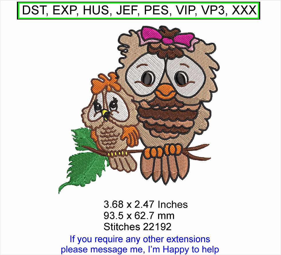 Missy And Bengie the Owls - ITH - Machine Embroidery Hoop Design