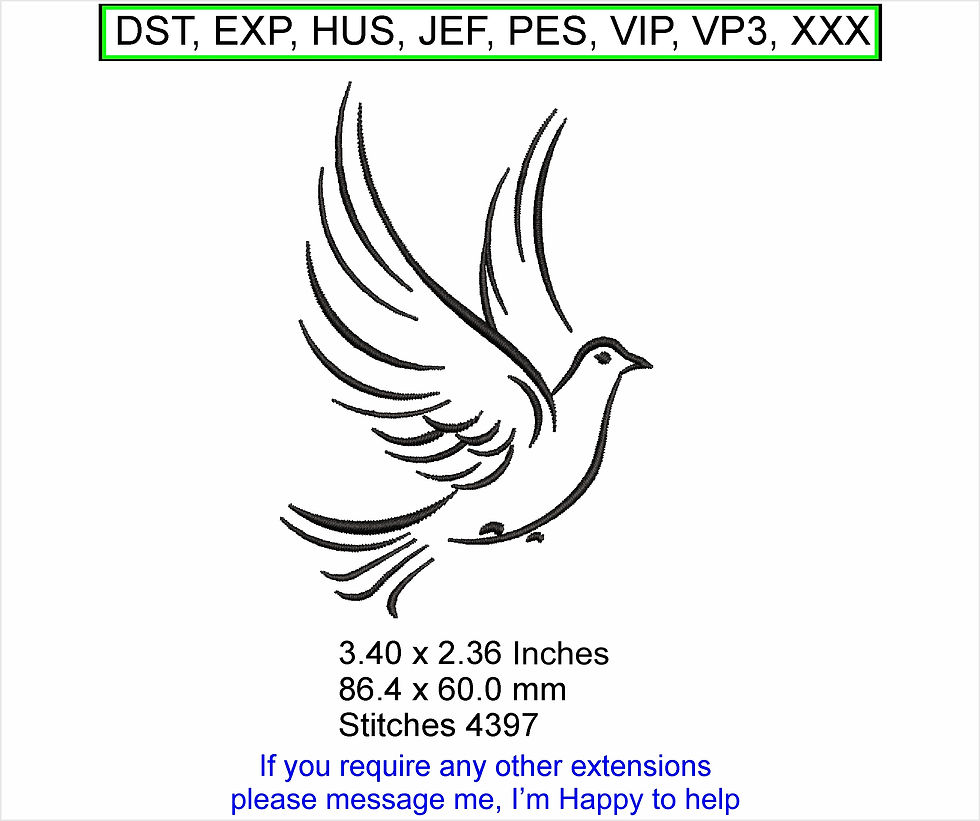Destiny the Dove - Size 1.70 x 1.19 Inches - Machine Embroidery Design