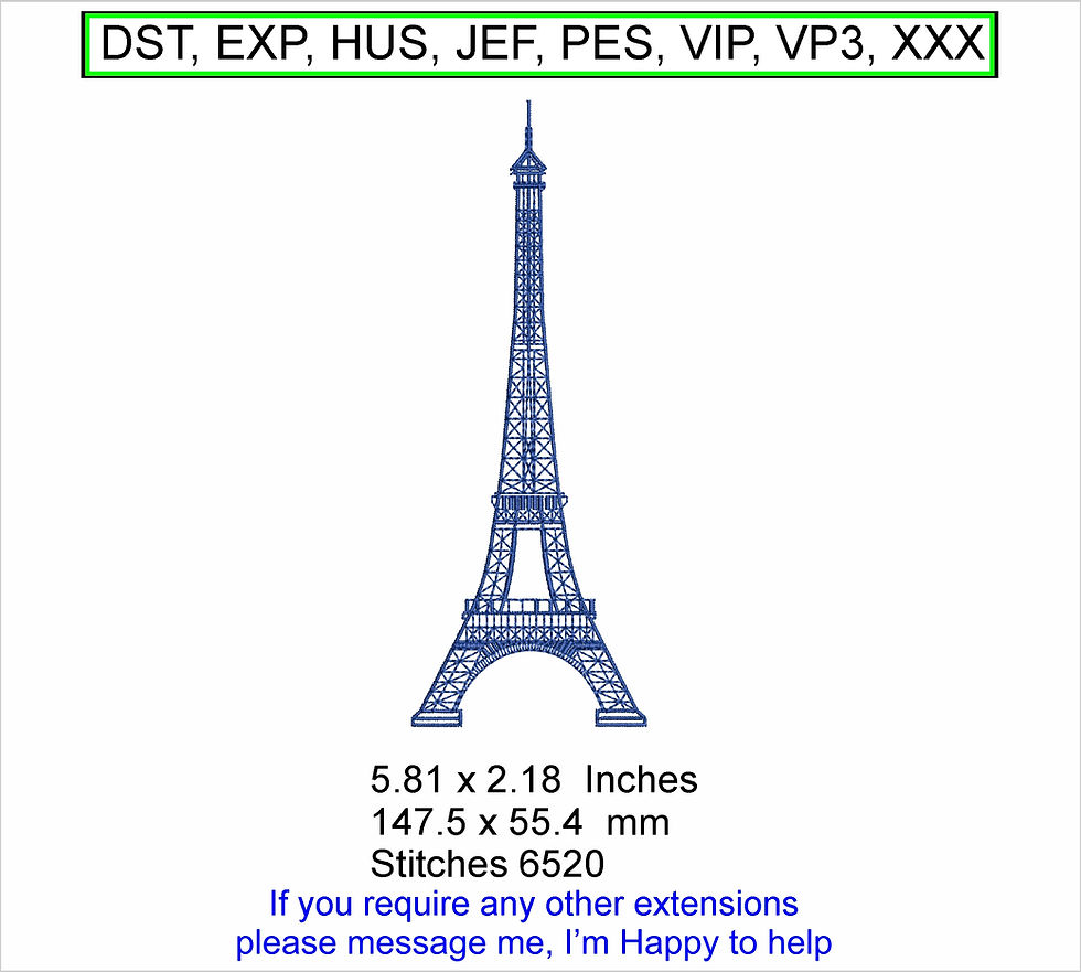 Eiffel Tower Building - Large - Paris - Machine Embroidery Hoop Design - ITH