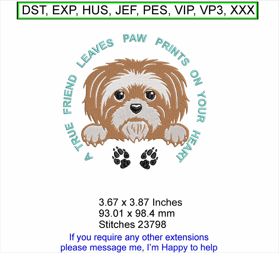 Paw Prints Shih Tzu - Small - Machine Embroidery Hoop Design - ITH